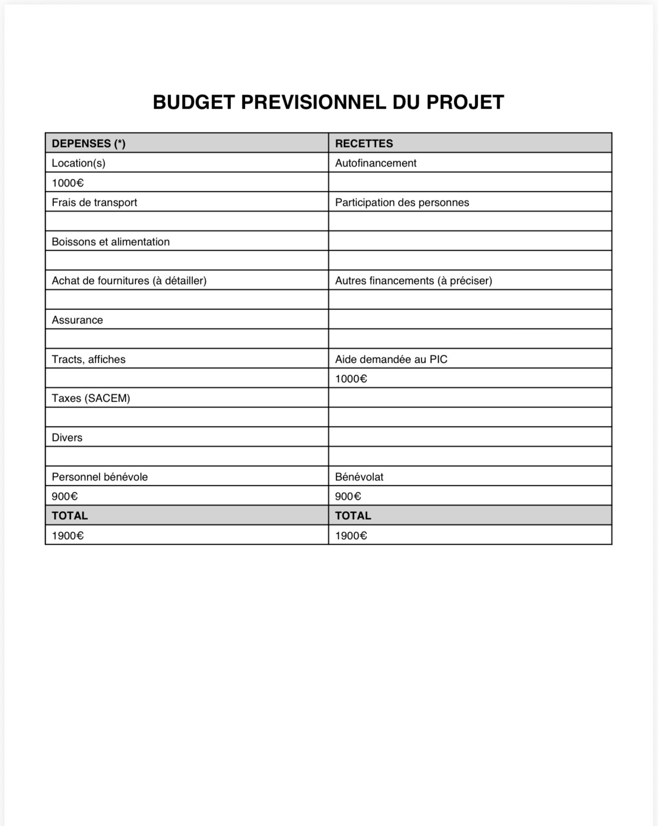 Budget prévisionnel